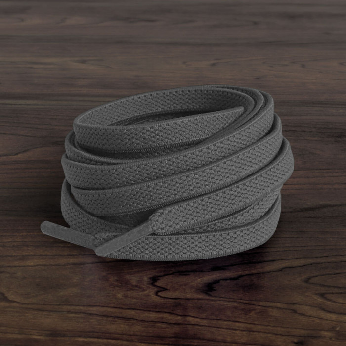 Dark gray elastic flat shoelaces will outlast the shoes themselves.
