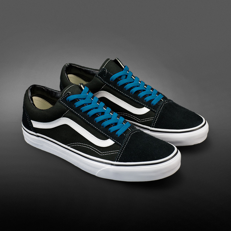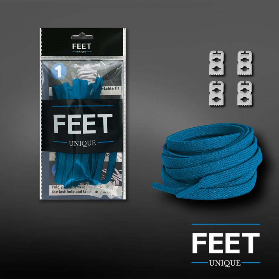 The color of the shoelaces in a combination of turquoise and blue. It's a great color choice if for no other reason than it's exciting and unique! That's why turquoise-blue elastic flat shoelaces can really make a plainer pair of shoes more stylish.