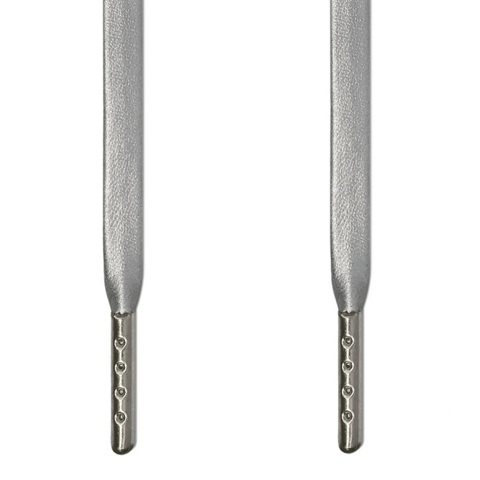You could take an old, worn pair of boots, the soles held together by tape, and our silver flat leather shoelaces will make them wedding-ready. So sliding them into a fly pair of trainers? You'll have what we in the trainer community call "too much to handle."